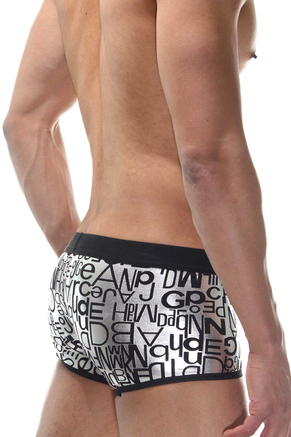 Мужские серебристые трусы-боксеры с принтом.