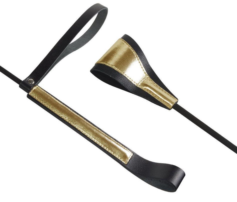 Основа стека - гибкий и прочный углепластик с черным нейлоновым плетёным покрытием. Гладкая и удобная цилиндрическая рукоять обтянута черной кожей с золотой вставкой и имеет удобную черную кожаную петлю для фиксации изделия на запястье (темляк). Окончание-хлопушка выполнено в виде сложенной полоски из плотной натуральной высококачественной кожи черного цвета с золотой контрастной отделкой.